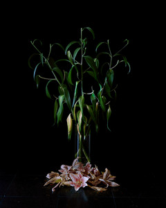 «With light as her most valuable ally, she depicts beings and silences, atmospheres and scraps of matter – skin, fur, feathers, wood, fruit, flowers and objects on which she seems to bestow a soul, to tell mysterious, whispered stories. She is spectacularly successful at creating an enigmatic universe that incites the spirit to dream. This poetic world, composed of subtle signs, is of an extreme melancholy.»